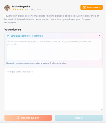 Pour les utilisateurs qui le préfèrent, il reste bien entendu possible de rédiger et publier une réponse manuellement, sans utiliser l’IA.